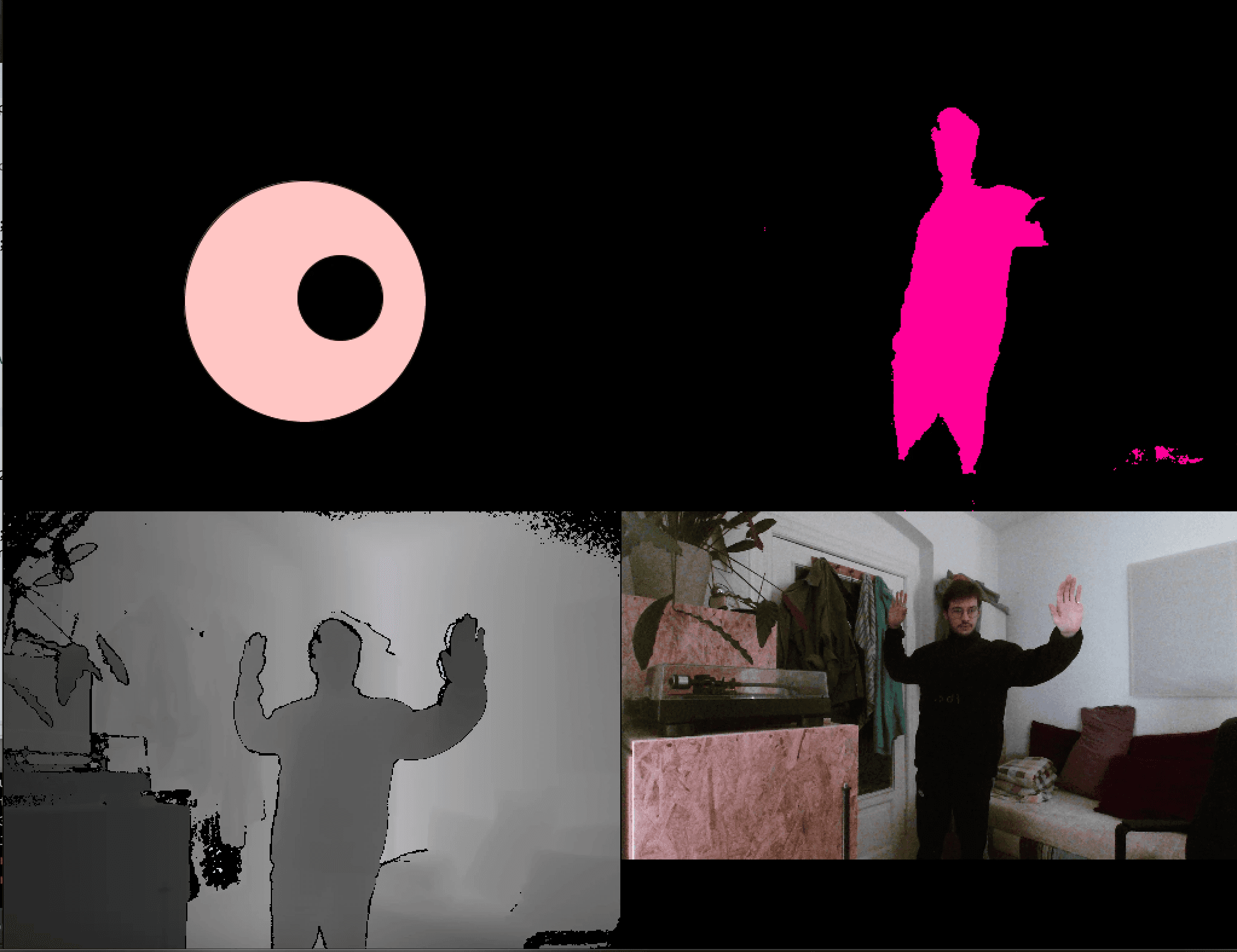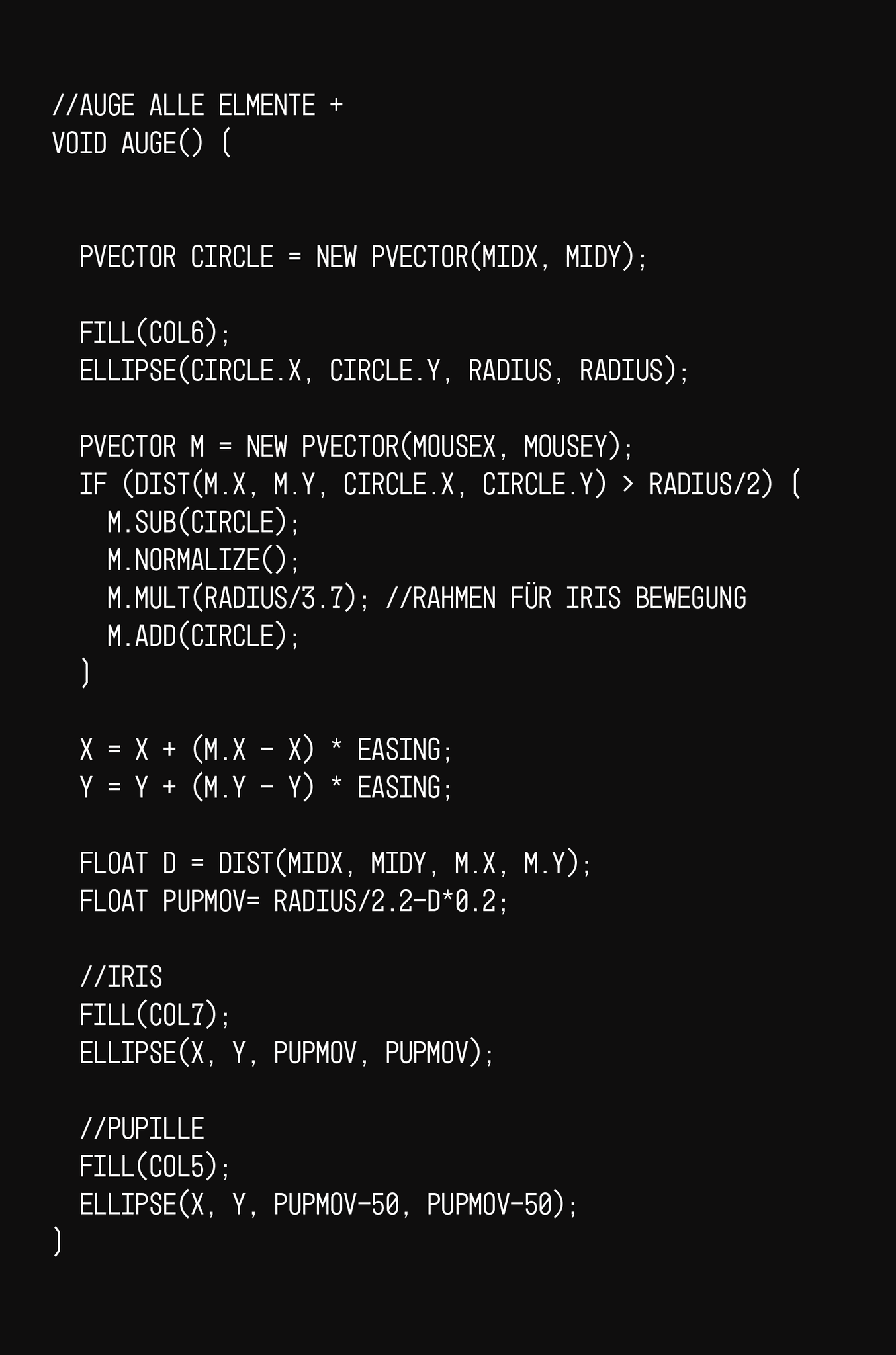 Teaming up with a fellow student (Ilja Shkonda), we created an engaging interactive storefront using Processing (Java-based coding) and advanced sensor technology. Our concept featured an animated eye that reacted to light levels: closing in darkness and opening in brightness. We enhanced the experience with an Xbox Kinect, enabling the eye to track and follow objects within a specific distance range (0.5 to 1.5 meters) captured by the Kinect camera.To further develop the project, we shifted focus to tracking passing individuals. Initially using the Kinect, we later switched to a RealSense camera with body tracking, allowing the eye to dynamically follow detected bodies. This project showcases a fusion of creative coding and sensor technology, offering an immersive digital experience that engages and surprises passersby.